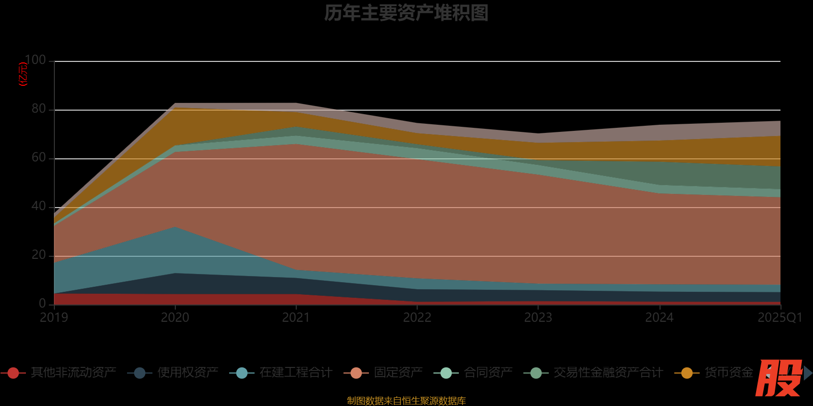 资产重大变化方面,截至2025年一季度末,公司货币资金较上年末增加44.06%,占公司总资产比重上升4.84个百分点;固定资产较上年末减少3.8%,占公司总资产比重下降2.96个百分点;交易性金融资产合计较上年末减少2.11%,占公司总资产比重下降0.54个百分点;应收票据及应收账款较上年末减少14.74%,占公司总资产比重下降0.45个百分点。