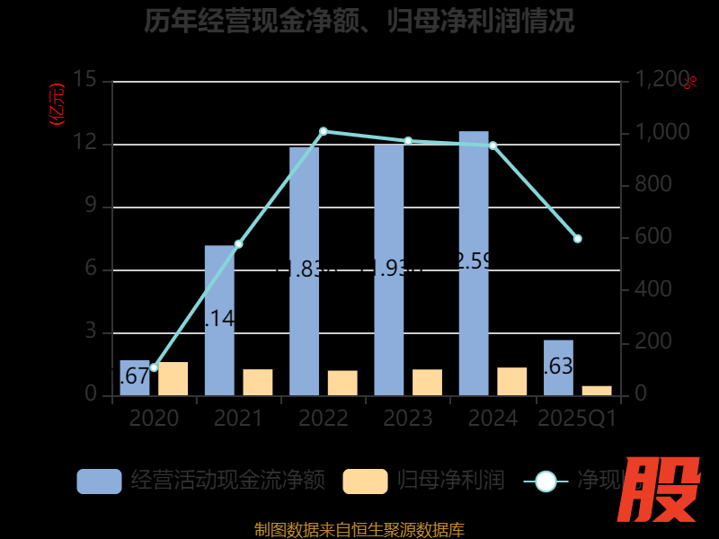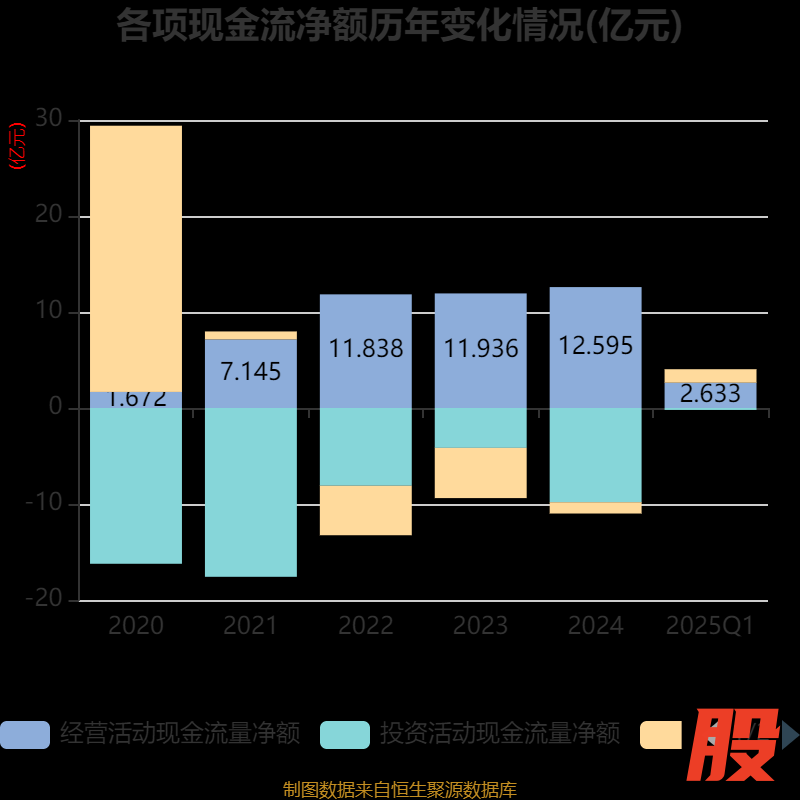 截至2025年一季度末,公司经营活动现金流净额为2.63亿元,同比增长81.93%;筹资活动现金流净额1.41亿元,同比减少793.92万元;投资活动现金流净额-2009.5万元,上年同期为-1.99亿元。
