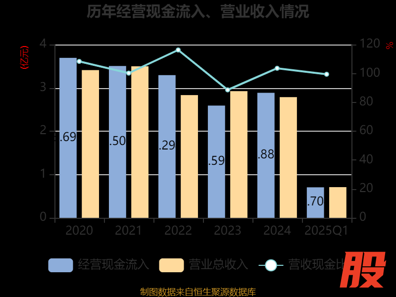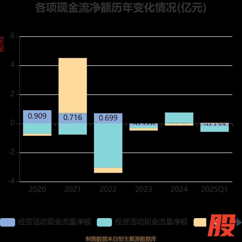 截至2025年一季度末,公司经营活动现金流净额为-1592.14万元,同比减少1585.3万元;筹资活动现金流净额378.05万元,同比增加406.53万元;投资活动现金流净额-4202.67万元尚竞配资,上年同期为-808.33万元。