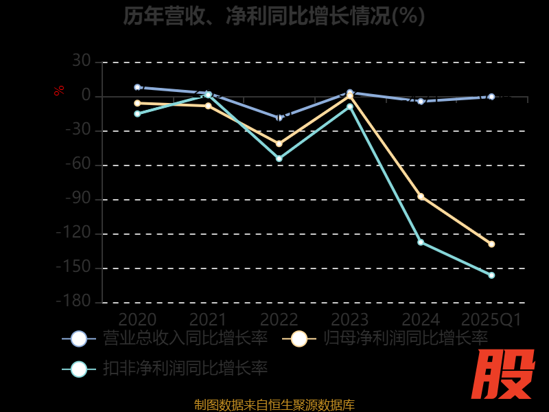 盈利能力方面, 2025年一季度公司加权平均净资产收益率为-0.45%,同比下降1.95个百分点。公司2025年第一季度投入资本回报率为-0.36%,较上年同期下降1.75个百分点。