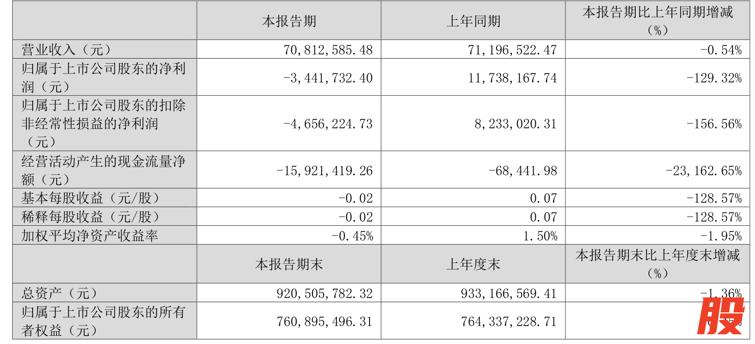 中证智能财讯粤万年青(301111)4月26日披露2025年第一季度报告。公司实现营业总收入7081.26万元,同比下降0.54%;归母净利润亏损344.17万元,上年同期盈利1173.82万元;扣非净利润亏损465.62万元,上年同期盈利823.3万元;经营活动产生的现金流量净额为-1592.14万元,上年同期为-6.84万元;报告期内,粤万年青基本每股收益为-0.02元,加权平均净资产收益率为-0.45%。